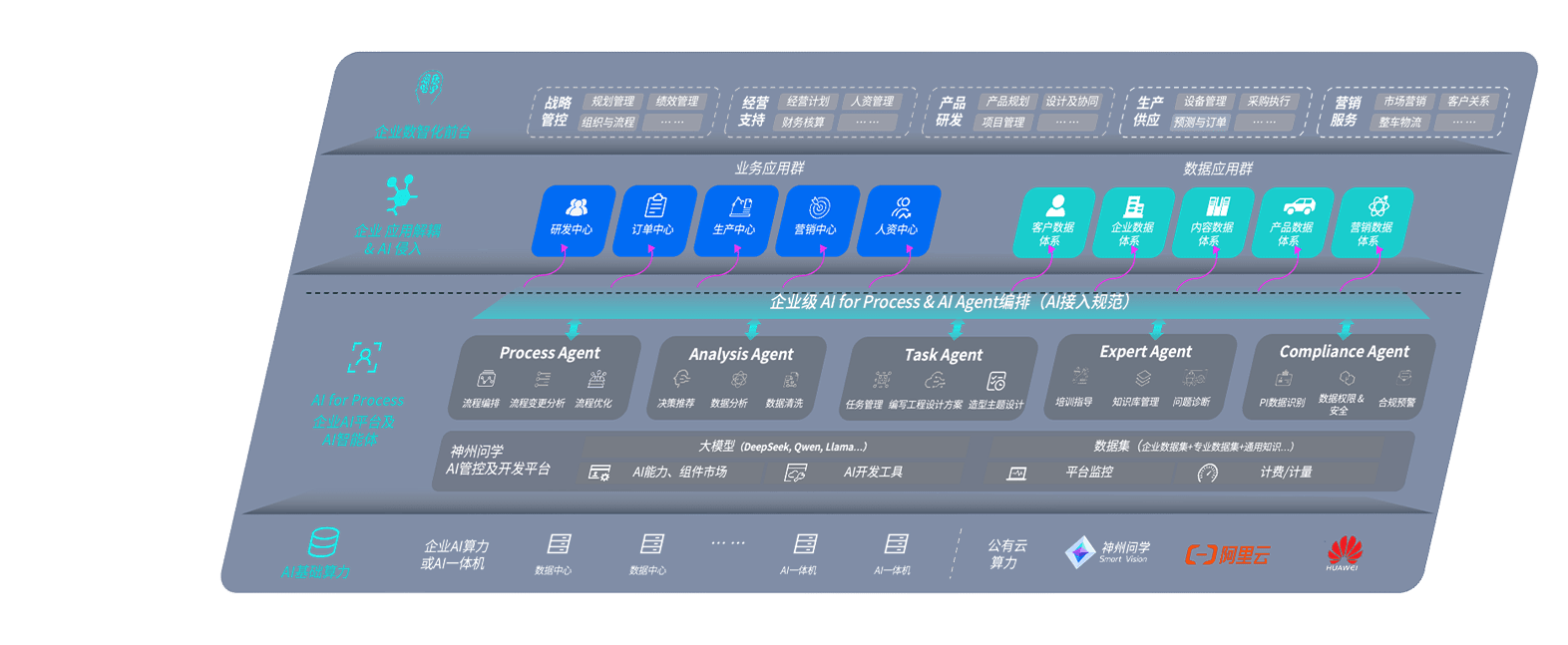 意昂2问学智车解决方案是一套基于AI技术的汽车行业智能化系统,,,,覆盖从底层算力到顶层AI应用的全栈方案。。。。方案由算力层、、、模型层和应用层组成:算力层,,,方案支持多种一体机配置,,,,具备云端灵活部署、、、多云适配以及动态优化计算资源的能力;模型层,,,意昂2问学平台版提供了企业级AI应用一站式构建与管理平台,,支持基于后训练强化技术的汽车企业专属模型的训练、、、、评测和运营;应用层,,,,意昂2问学DeepSeek版提供包括超级员工、、、、智能招采、、智能营销、、、智能客服、、、AI for BI等一系列解决方案,,,,可助力汽车行业实现数字化转型,,,,让管理更智能、、响应更敏捷。。。