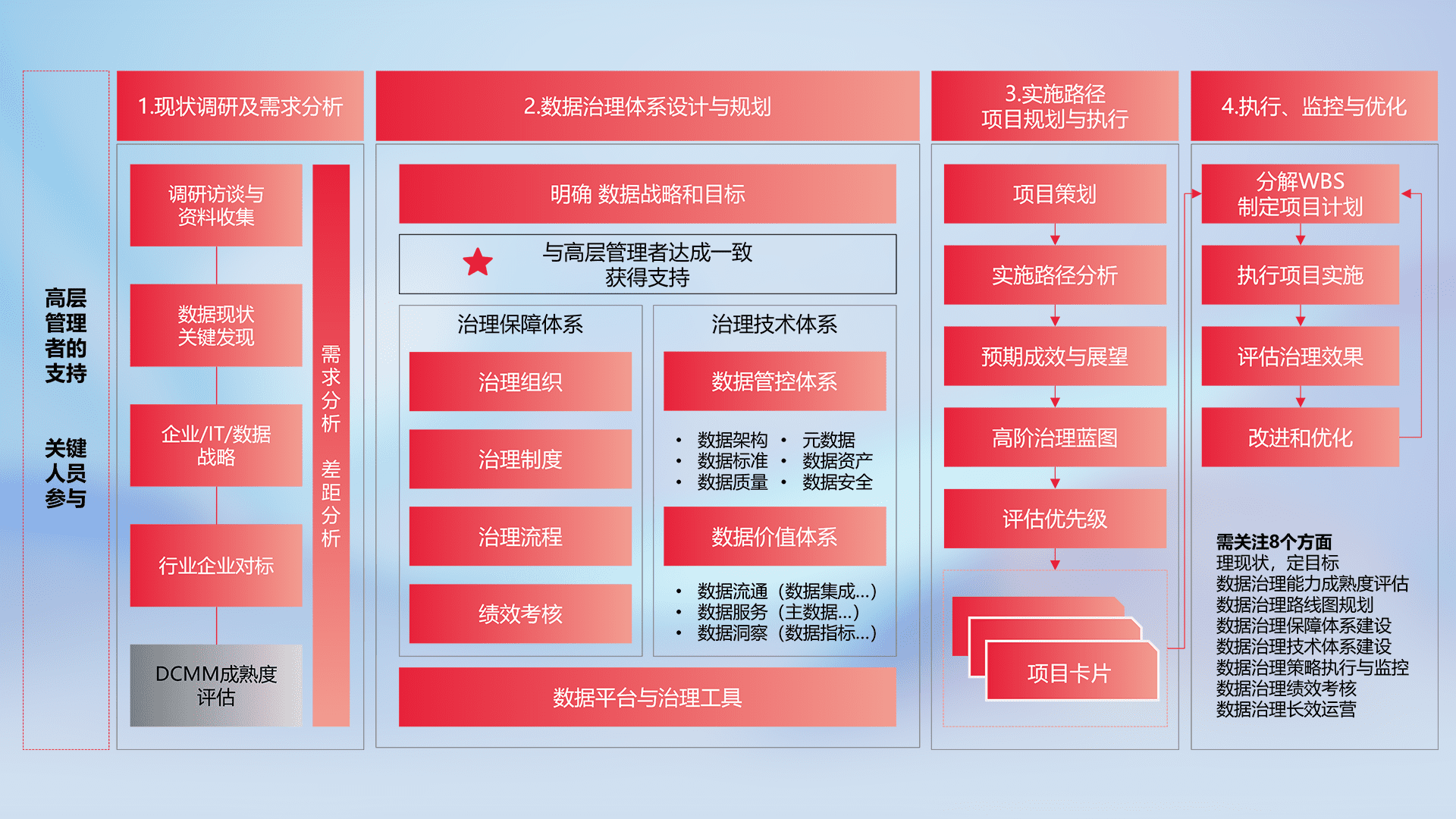 制定并执行统一的数据标准,,,,规范数据定义和格式,,,消除冗余和不一致性,,实现跨部门和跨系统的数据一致性,,,为企业提供标准化的数据基础。。。